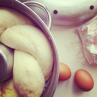 NB:Se volete velocizzare il tutto basterà usare l'intero panetto di lievito fresco, dovrà così lievitare due ore il primo impasto e un'ora la treccia dentro al fornetto.